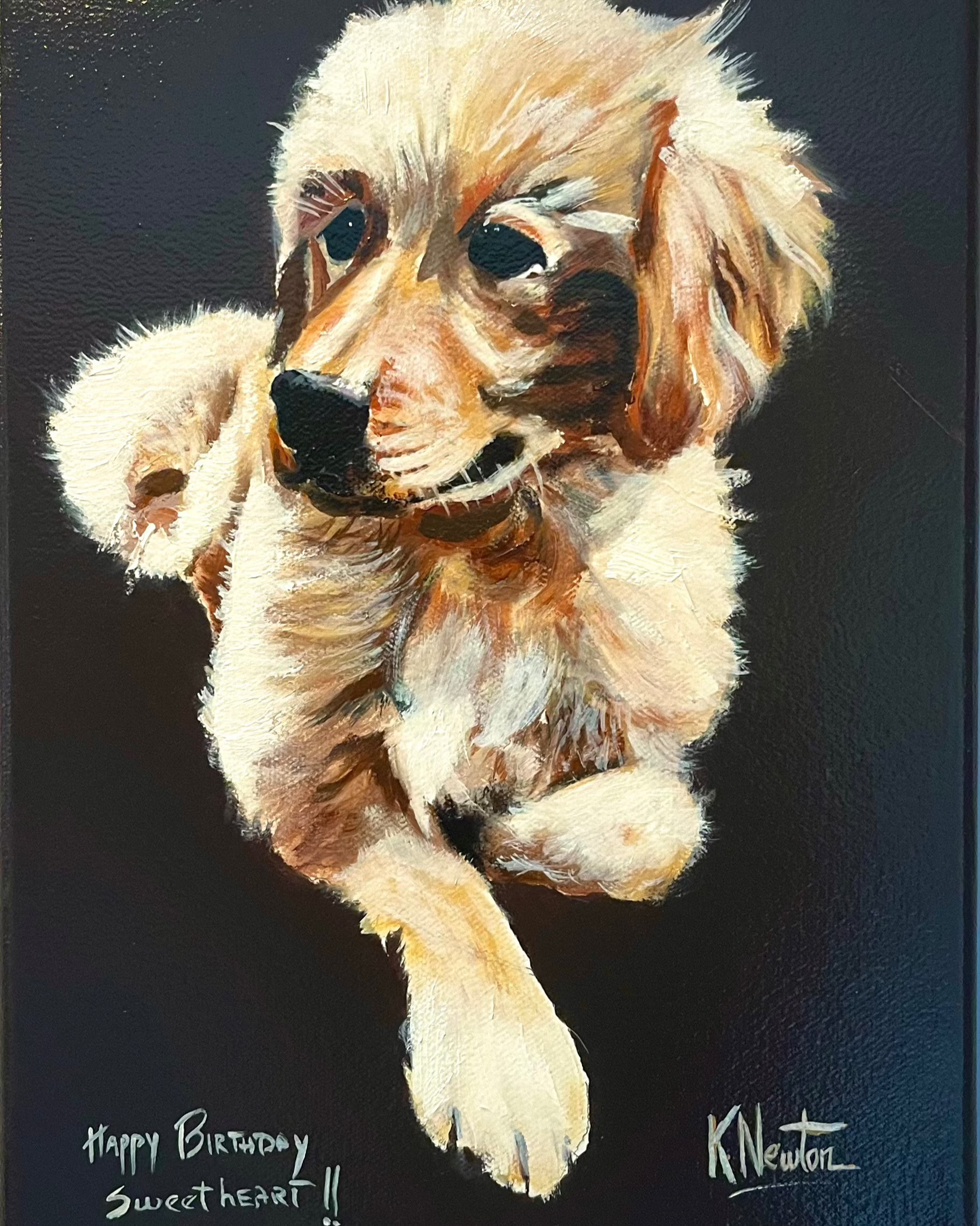 Step into Kyle’s world of oil painting, where memory meets medium and every piece begins with a story. From beloved pets and coastal scenes to quiet moments and bold color, this collection reflects the heart behind each brushstroke.