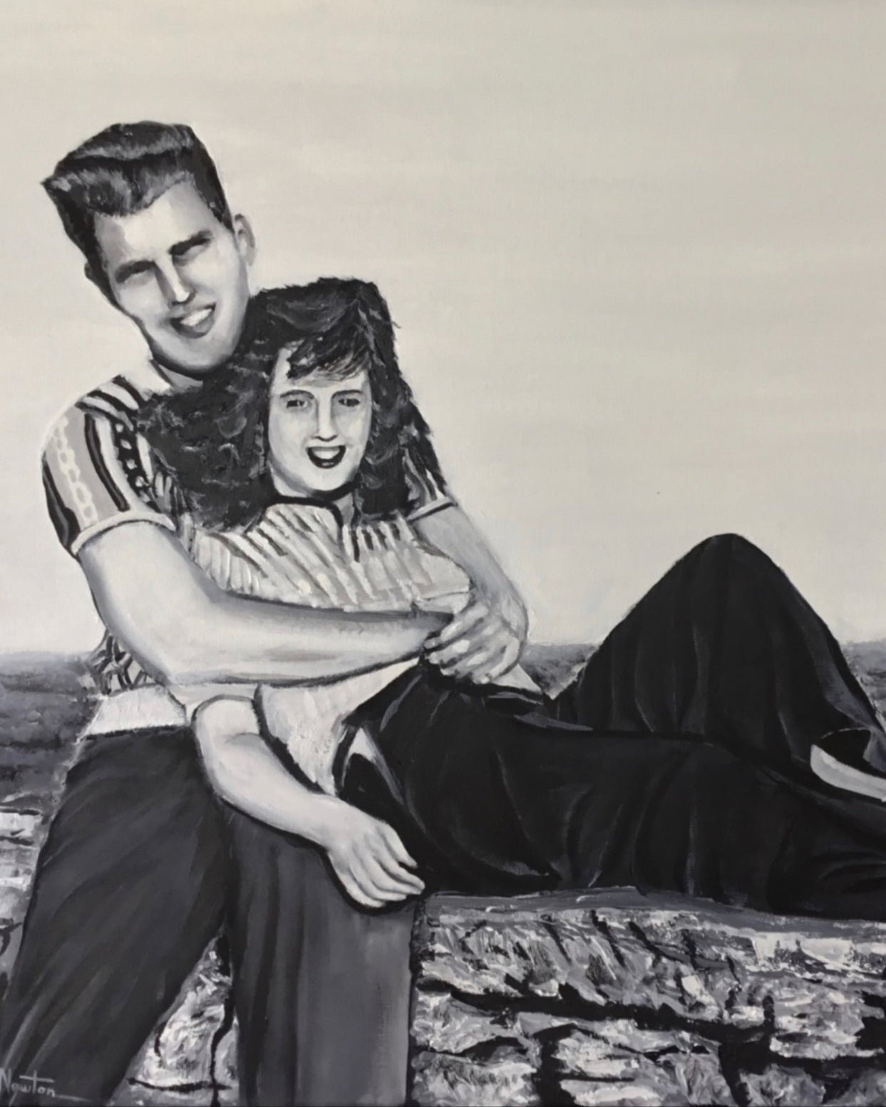 1949 mom and dad - Goddard Park Rhode Island high school graduates oil on canvas