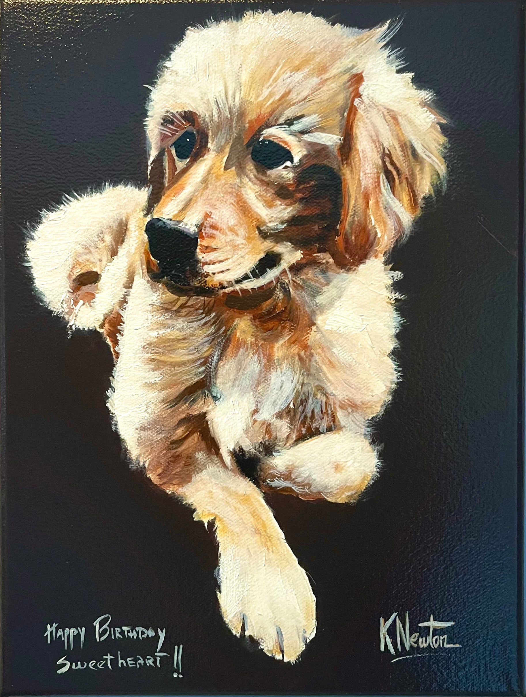 I painted this for my daughter’s birthday — her golden retriever, her best friend. ‘Happy Birthday Sweetheart’ is my way of freezing that moment in time. It’s a reminder of why I paint: to hold on to what matters most.