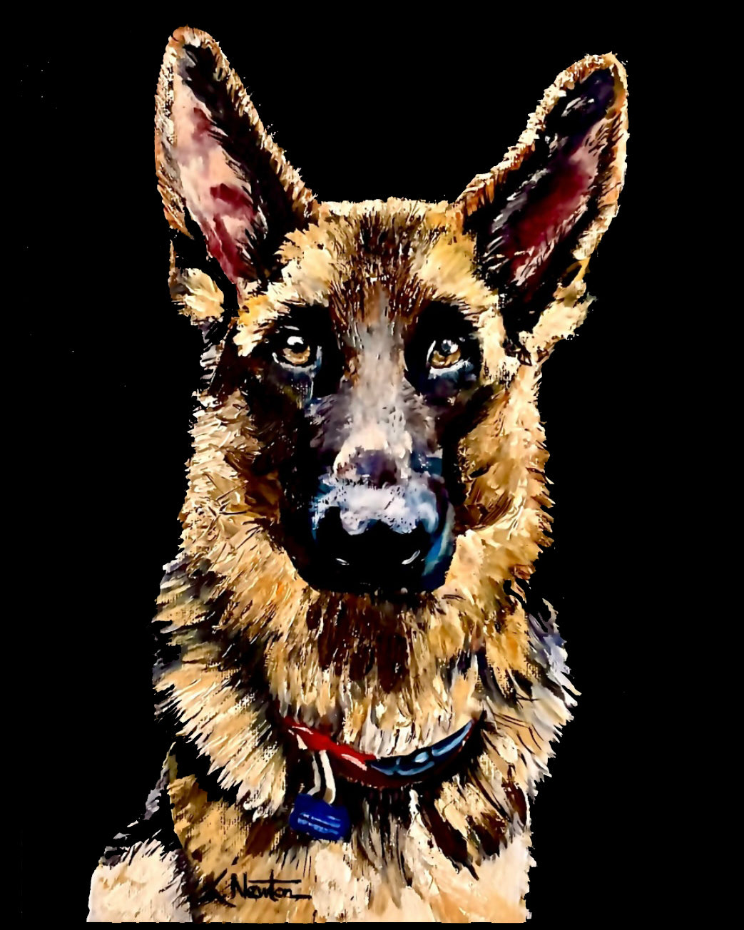 One of my first commissions — a German Shepherd for my cousin, painted back when I was still living in Rhode Island.